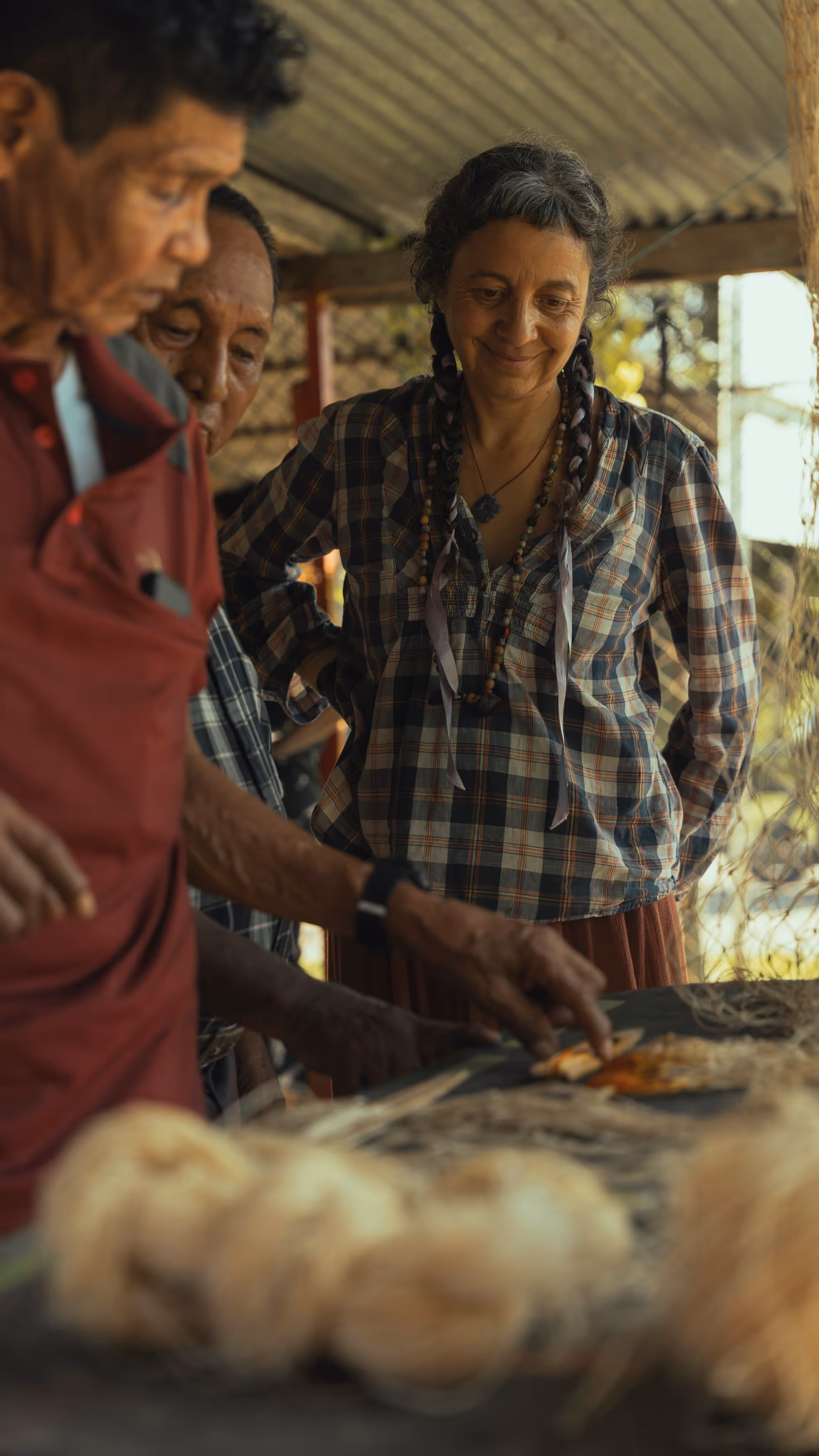 En lo personal y profesional, este trabajo nos transformó. Juanita afirma que le “mostró el valor que tiene la práctica artística en comunidad… (le) reafirmó que hay mucho que aprender de otros”. M señaló que la experiencia permitió a los estudiantes enfrentarse a las dificultades de convocar a una comunidad indígena con una alta influencia urbana y a lo que implica liderar un grupo y organizar una salida de campo, aprendizajes que son difíciles de evaluar, pero fundamentales para prácticas profesionales responsables y autónomas. Por su parte, Sophia, que se unió por un rato al grupo de tejido, aunque no tenía experiencia previa en textiles, terminó encontrando allí un gran interés. Se sorprendió de ver cómo el textil puede dar paso a tantas conexiones y conversaciones bonitas y profundas. "Me di cuenta de que en mi trabajo profesional me apasiona trabajar en colectivo" —compartió con el grupo.