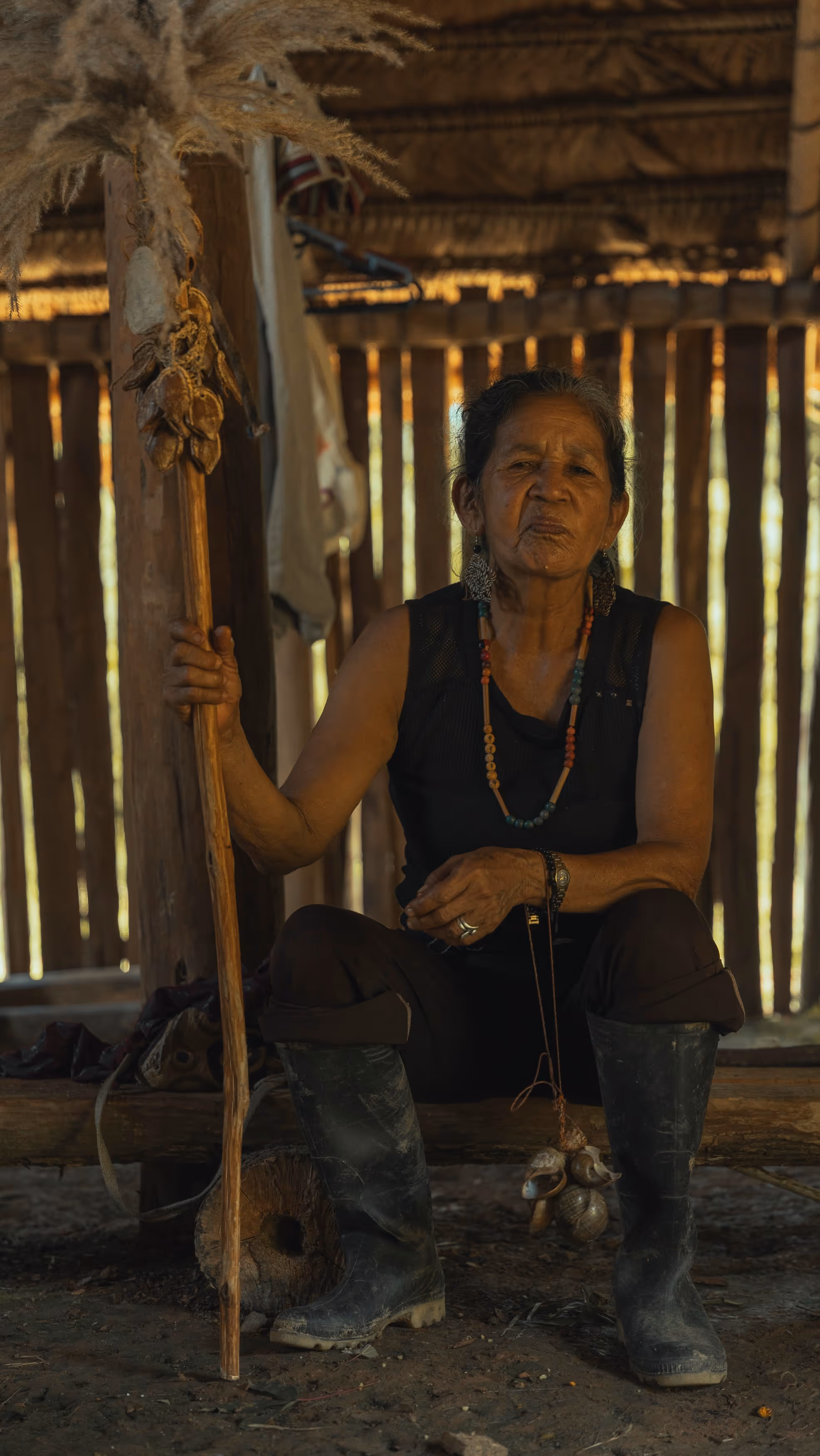 Al terminar la jornada, mientras esperábamos el bus de las 2:00 p. m., fuimos a conocer el resguardo, a comer granadilla de la chagra y a bañarnos en la quebrada. Lo más valioso no fueron únicamente las tomas realizadas, sino los momentos de convivencia que despertaron memorias y oficios en la comunidad, y que nos permitieron aprender de los tiempos, ritmos y temas importantes para la comunidad a la que visitamos. La abuela Helena nos enseñó a pedir permiso para entrar a la maloka y nos compartió cantos.