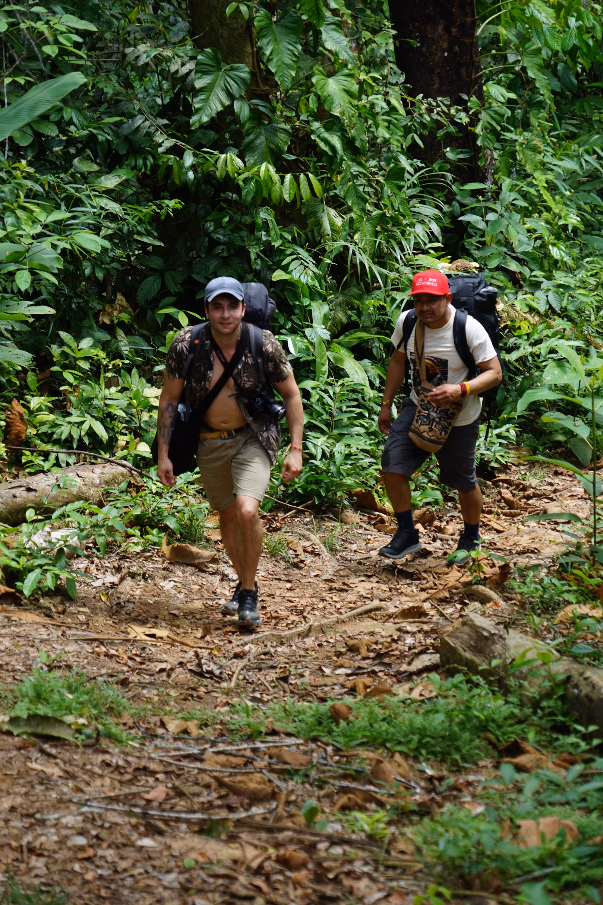 Cuando ya nos habíamos reunido todo el equipo que participó en esta entrada, nos preparamos para ir al km 23. Con la aprobación de la comunidad y la participación activa del comunero Nixon Ahué Santos, Nos encontramos el km23, compartimos la cena antes de salir y dormimos, pasamos la noche en el Km 23 y al siguiente día iniciamos la caminata de 3 horas por la selva hasta Arara. El camino a Arara nos permitió conectarnos con la selva y este territorio mágico y ancestral de los Magüta, el comunero y guia Nixon Ahué lo hacía más especial pues conocía el territorio cómo la palma de su mano y hasta nos dio consejos por si nos perdíamos en la selva, cómo seguir la trayectoria de los aviones la cual nos podría indicar hacia donde estaba Leticia. También nos habló de los distintos animales que se encuentran en la región, de los espíritus de la selva, de los hongos luminiscentes, de las frutas que podíamos comer, también nos habló de la pesca y las guacamayas azules.