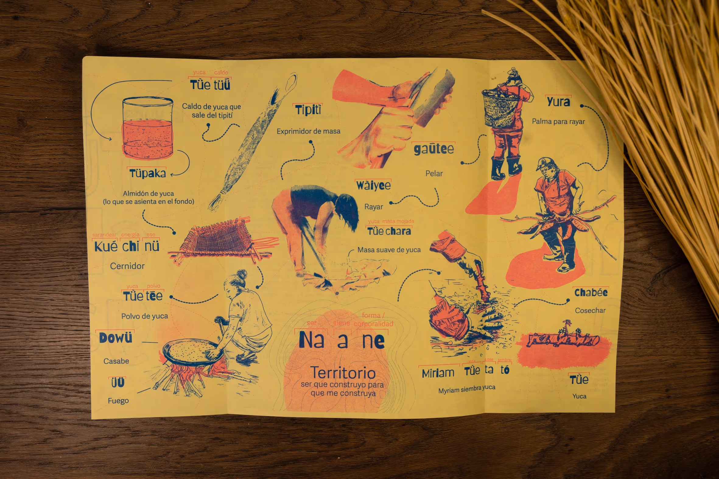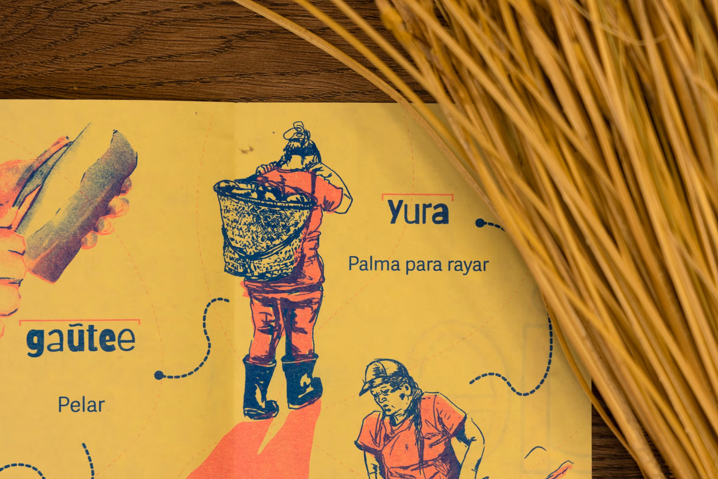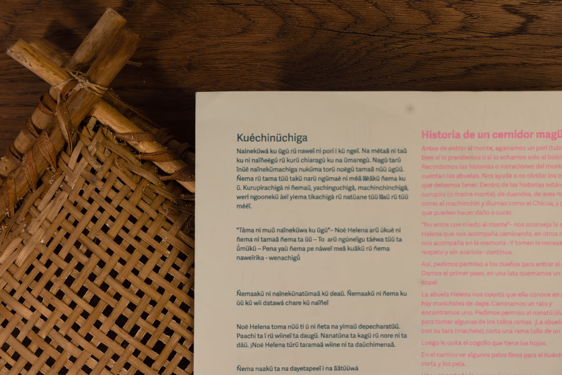 Desde la primera entrada a territorio se empieza a tejer una alianza con el profesor Abel Santos Angarita, de la Universidad Nacional de Colombia, Sede Amazonía quien nos asesora en la publicación de la serie de impresos Magütágüchiga que se centran en el tejido y el territorio para fortalecer la lengua y la cultura en la comunidad. En diciembre del 2026, organizamos un encuentro para hacer entrega del impreso y organizar una serie de eventos de cierre del año. Este encuentro se centró en el tejido y el territorio para fortalecer la lengua y la cultura en la comunidad magüta en Castañal Los lagos (km 2.5 vía Leticia Tarapacá) y en la sede Banco de la República en Leticia.