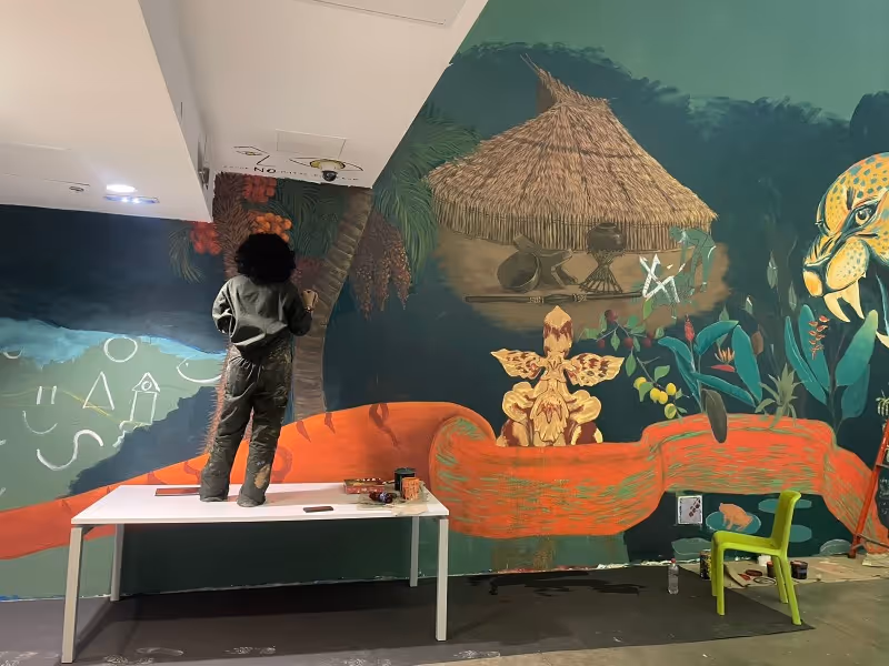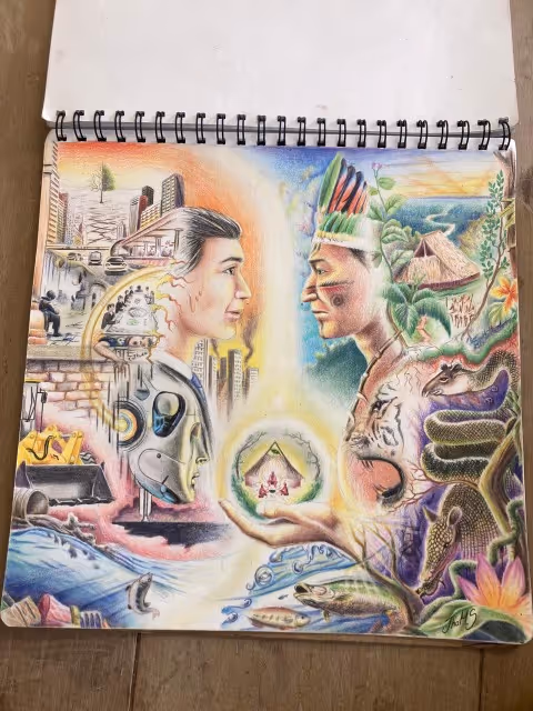 A partir de una investigación sobre el pensamiento de algunos pueblos de la Amazonía, que inicia en el periodo intersemestral del 2024, se decide coordinar la ejecución de un mural para crear conciencia sobre el trabajo que viene haciendo las Asociaciones de autoridades Tradicionales -AATI- que contribuyen al ejercicio de protección de los pueblos indígenas en aislamiento voluntario o pueblos indígenas en Estado Natural, en particular los que habitan en PNN Río Puré y también sobre los derechos de dichos pueblos.