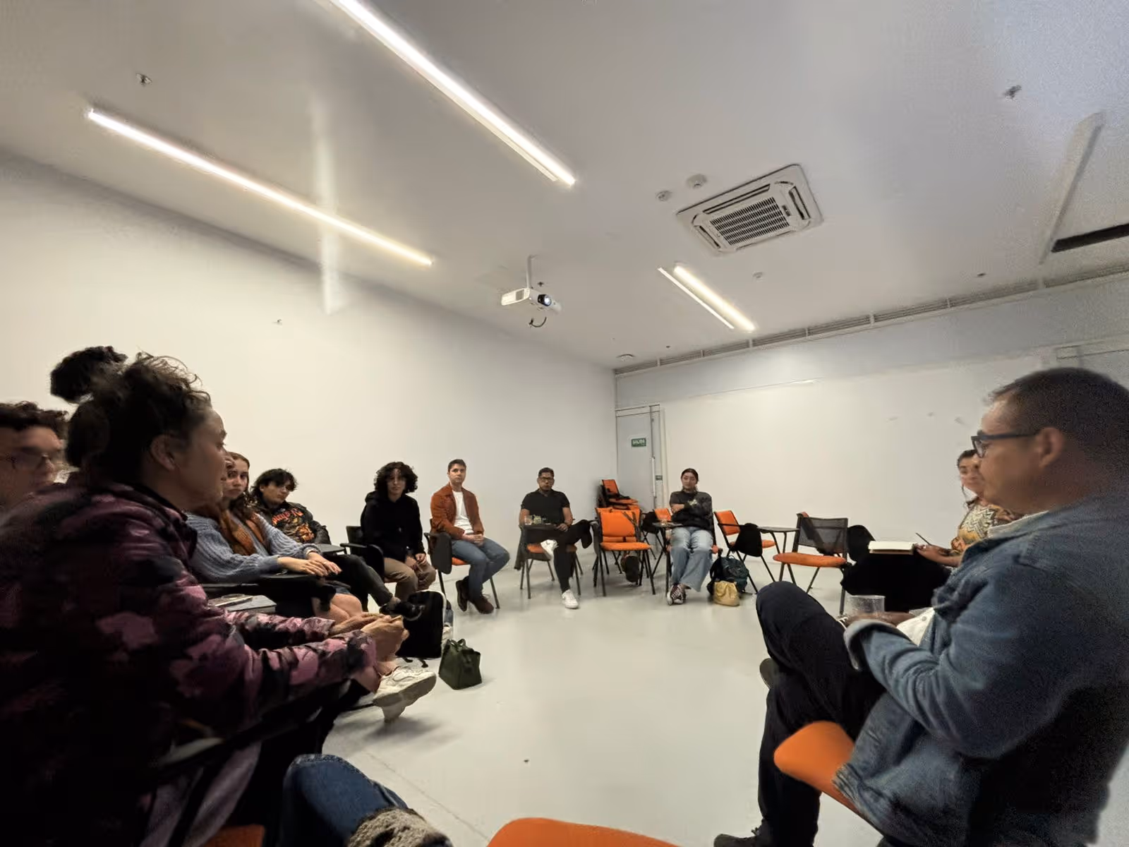 Gracias a la presencia de Jhonyl, Jhonier y Parente, quienes vienen desde el territorio amazónico, el semillero se abre un proceso de aprendizaje colectivo nutrido por charlas y diálogos. Su experiencia, junto con la participación estudiantil definió el tema central del mural: las comunidades indígenas en aislamiento voluntario y las organizaciones que les protegen. De esta juntanza con estos jóvenes líderes de sus territorios con la comunidad universitaria se produce el intercambio de saberes que tendría como resultado el mural. En esta etapa Jhon Sebastian Parente dió una charla sobre Descolonización cartográfica abierta al público.